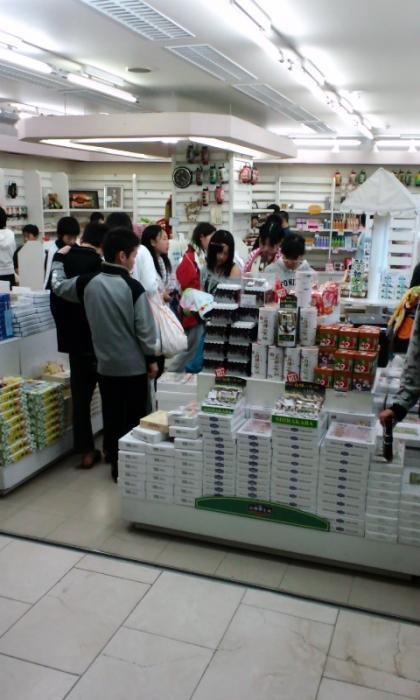 天気といい、雪質といい、最高のコンディションにめぐまれた中日でした。5時間におよぶ講習も無事終了、初心者も、かなりの斜面を滑れるまでに上達しました。写真は宿舎に帰ってきてからの、お土産タイムです。売店は大繁盛でした。