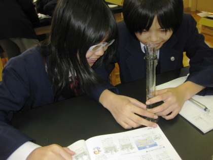 「体積」を測定するために「メスシリンダー」の読み方を学習し、