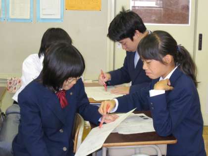 答え合わせとともに、誤答の多かった設問の解説や、今まで学習した内容の復習が行われています。