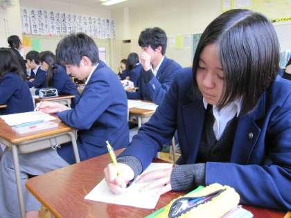 今日の授業では、どのクラスもその原稿づくりに取り組んでいました。