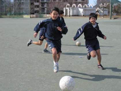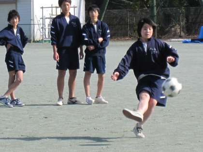 高橋先生のおっしゃるように、今日の授業は貴重な校庭での球技です。 一生懸命ボールを追いかけて、いい汗をかいてください。