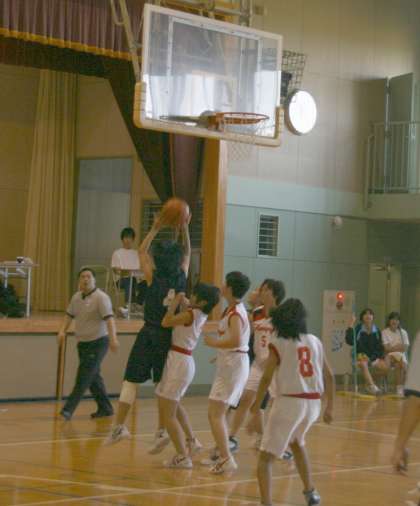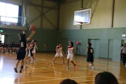試合は開始早々、連続してロングシュートが決まり、第1ピリオドはペースをつかむことに成功しました。続く第2ピリオドは相手の得点を0点に抑え、さらに差を拡げ前半を21−10で終了しました。後半に入っても別所ペースは続きます。最終ピリオドで上柚木中の追い上げにあいましたが 最終スコア 45−32 で別所中の勝利!