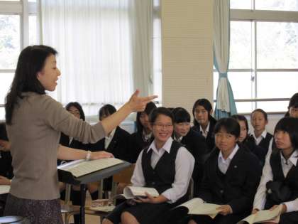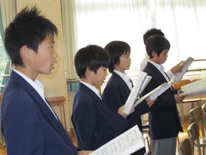インフルエンザによる出席停止や、風邪などでの欠席の多い1学年にあって、このクラスは比較的元気なようで、明るい歌声を音楽室に響かせています。