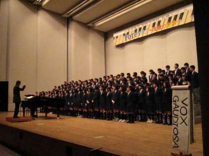 いよいよ合唱コンクールもフィナーレ。 VOX GAUDIOSAの皆さんと、本校3年生全員によるコラボレーション合唱 「 Jupiter 」 です。