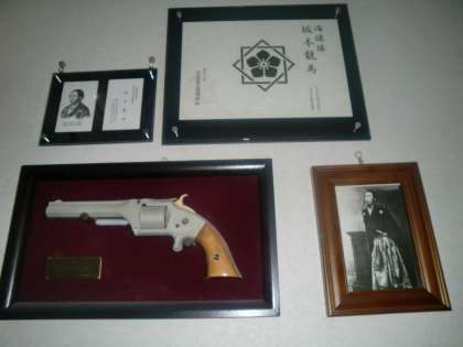 写真・左下の拳銃は、スミス・アンド・ウエッソン・レボルバーといって、龍馬が愛用していた拳銃です。