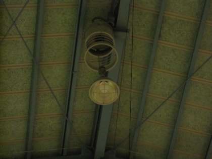 2.天井の梁 ( はり )をつたって、切れた照明のところまで行き交換する。