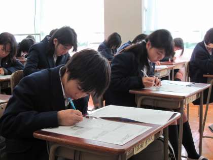 本日1時間目は、数学の試験です。 写真は、1年生の様子です。
