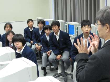 授業の後半、担当の岩本先生がアインシュタインの相対性理論のお話をしてくださいました。 … といっても、特別に難しい内容ではなく、光の速度や時間の話、アインシュタインの少年時代の話などです。