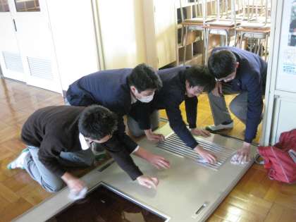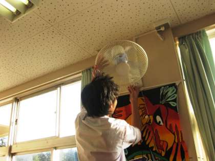 教室のドアや枠、扇風機まできれいに掃除します。