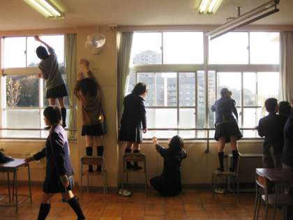 掃除用具入れ、黒板、机の整頓、窓のサン、出入りのドア、掲示物のはり方、ロッカー戸棚の上、ゴミ箱、雑巾などなど
