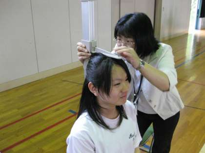 視力、座高の測定。