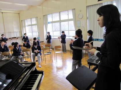 私が音楽室に入ったとき、ちょうど 「 指揮テスト 」 が始まるところでした。 そのため、室谷先生からは 「 校長先生、グッドタイミング! 」 生徒たちからは 「 げっ! 最悪のタイミング … 」 の声があがりました。