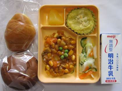 ● お楽しみパン(2種) ● ポークと大豆のトマト煮込み