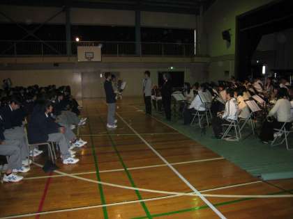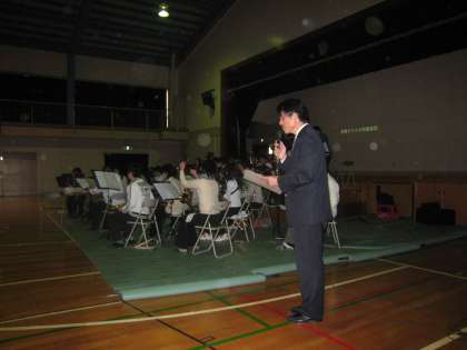 本日の午前11時から本校体育館で「多摩スマイル楽団演奏会」を開催いたしました。多摩スマイル吹奏楽団は「誰もが楽しめる音楽づくり」を合言葉に、多摩近隣の療養施設・老人ホームなどに積極的に訪問演奏活動を行っている市民吹奏楽団です。