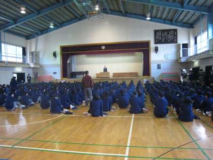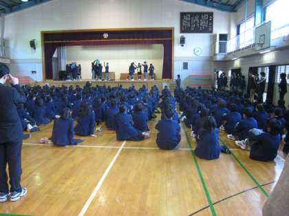 本日の午前8時30分から体育館で生徒会朝礼を行いました。今日も体育館は、大変厳しい寒さでした。最初に生徒会長から今年度も後約1か月しかないので、やるべきことをやり残さないにしましょうと呼びかけました。