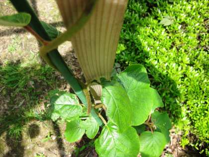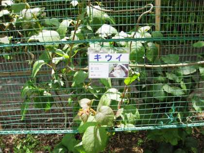 去年冬にPTAで植樹したキウイが元気に育っています。