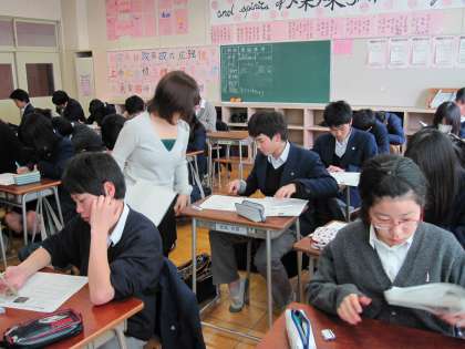 今日は、英語科の小又先生が1年生のスキー教室のお手伝い(引率)でいらっしゃらないため、少人数ではなく単学級での授業でした。