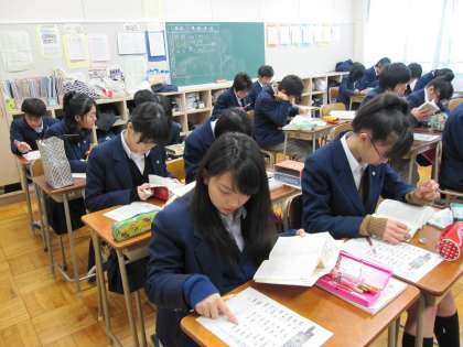 国語の授業では、四字熟語や難しい漢字の読みの問題に取り組んでいます。