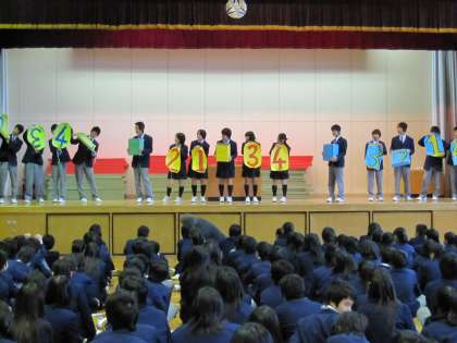 ※ 写真は、本日の朝礼で行われた 「 創立20周年記念 合唱コンクール 」 のプログラム順抽選会の様子です。