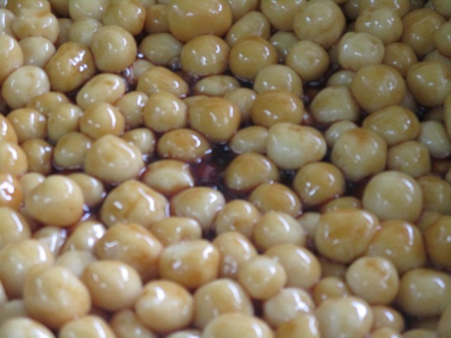 調理員さんが、一つずつ丹精込めて丸めた白玉を茹で、みたらしのタレに絡めました。
