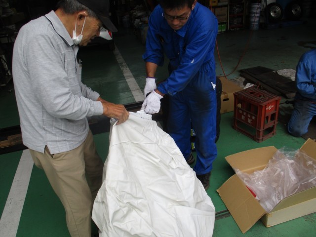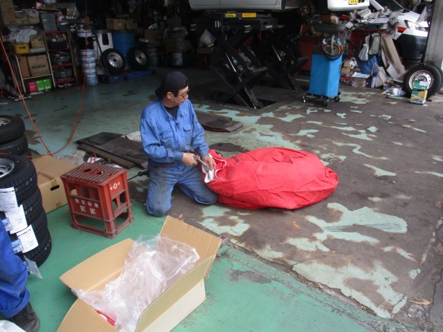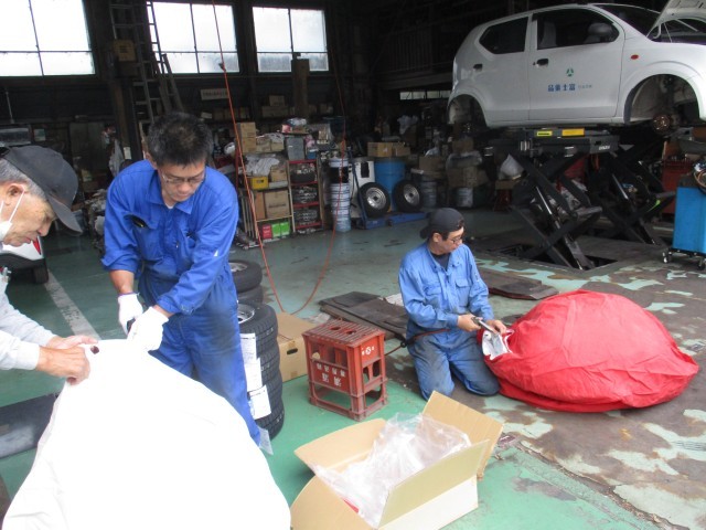 そこで、石井モータースさんにお願いをしまして大玉に空気を入れていただきました。