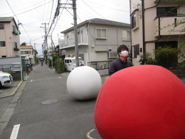 今日は、大玉に空気を入れました。とても大きいので学校にある空気入れの場合、1日でも入りきるか分かりません。