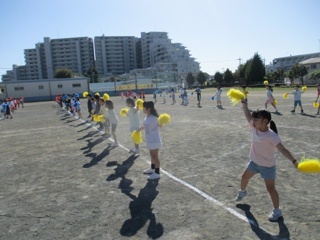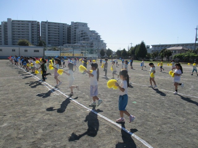 1年生の見どころは、にこにこの笑顔で輝くように踊る姿です。