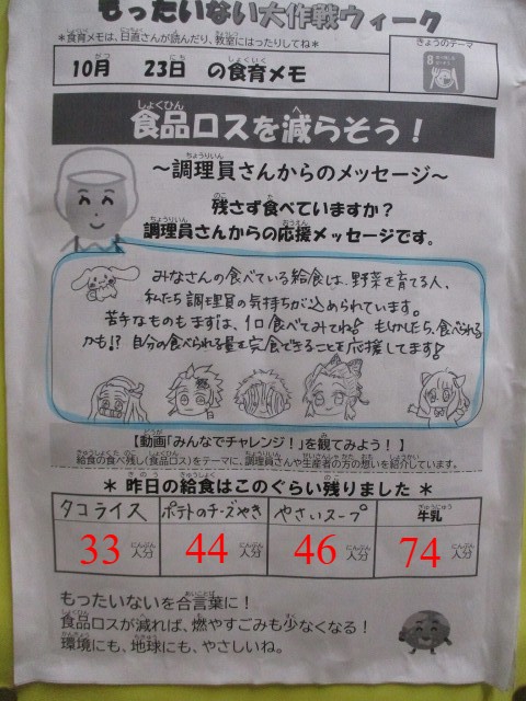 昨日は、残菜量が9月の半分ほどまで少なくなりました!