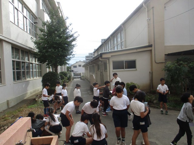 しばらく教室で漢字の学習や国語の学習を代わりに進めていましたが、外がぱっと明るくなり、校庭に行って影について調べることができました。