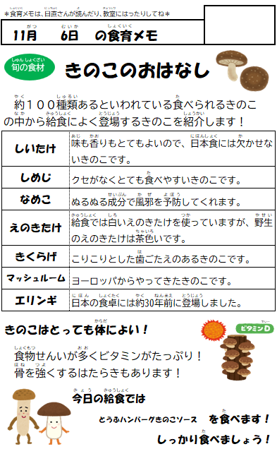 今月の給食も、旬の食材がたくさん登場します。秋の味覚を楽しみましょう♪