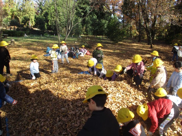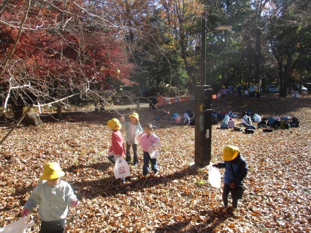 秋を探すことと、小宮公園の落ち葉集めを行いました。