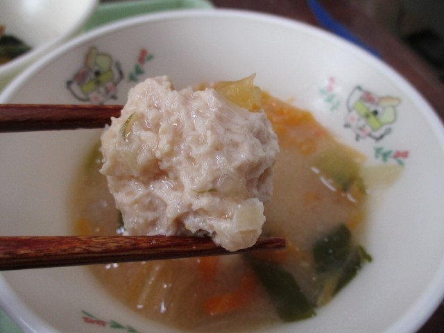 鶏団子は、鶏ひき肉にみじん切りにした八王子産の根しょうがを混ぜ込んでいます。