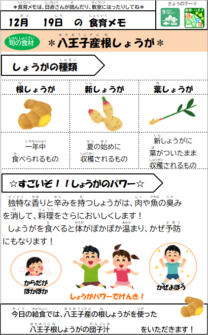 ほんのりと香るしょうがでほっと一息、午後の活動も頑張りましょう。