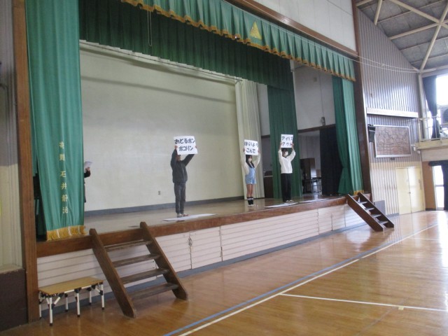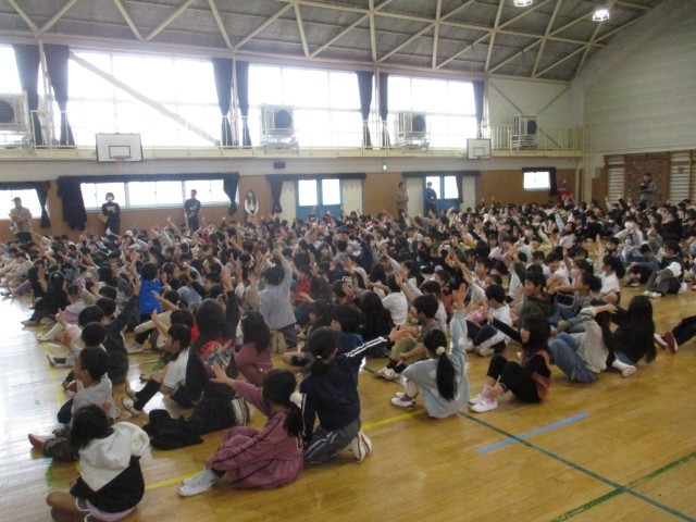 時には、曲に合わせて子どもたちが歌い、一体感ある集会となりました。