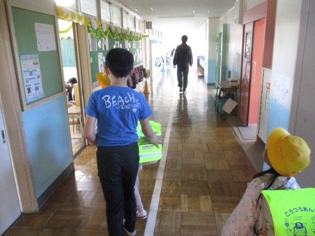 6年生のお手伝いを受けながら、朝の準備をしました。