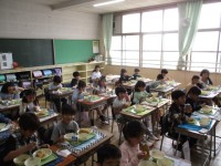 姫木平自然の家に着き、開校式を行いました。その後避難経路を班ごとに確かめました。