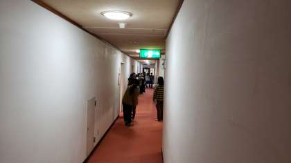 「姫木平自然の家」に着きました。開校式の後、宿の入り避難経路の確認をしました。