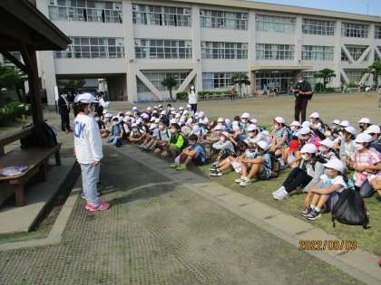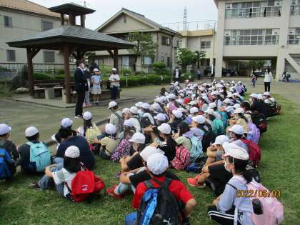 水族園からバスへの途中で雨がありましたが、十小に帰ってきたときは快晴です。