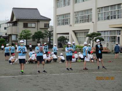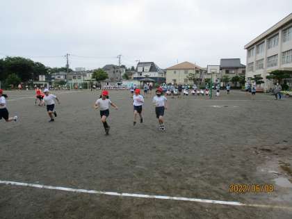 シャトルラン(折り返し走)に挑戦する3年生は、粘り強く走りました。