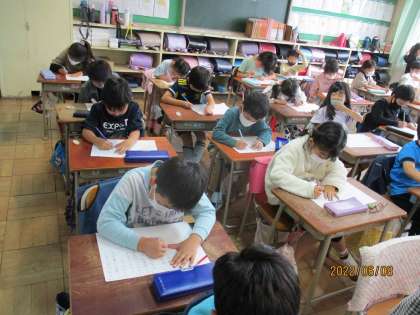 2年1組の参観の途中で、となりの2年2組も参観しました。