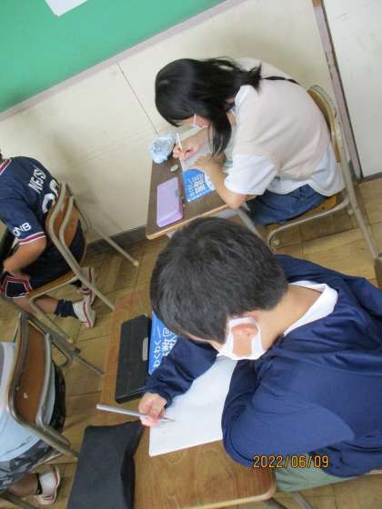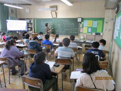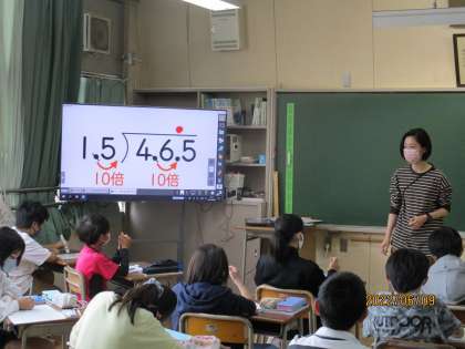 デジタル教科書を使って、問題解決の見通しが持ちながら、既習事項を踏まえて自力で問題を解き、よりよい解法について考えを深めていました。