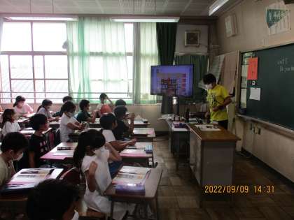 デジタル教科書で場面をイメージしながら楽しく英語に親しみました。