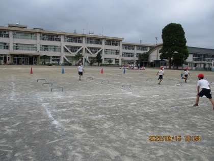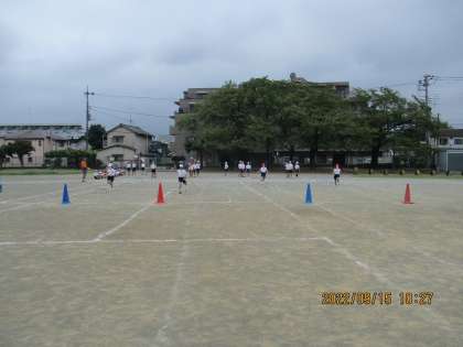 今日は、3クラスが校庭と体育館に分かれて体育をしました。