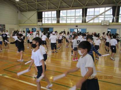 練習開始前から体育館に集まった子供たちが自主連?(ほぼ全員なので自主練というより練習です(^▽^)/)をしています。