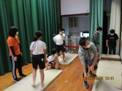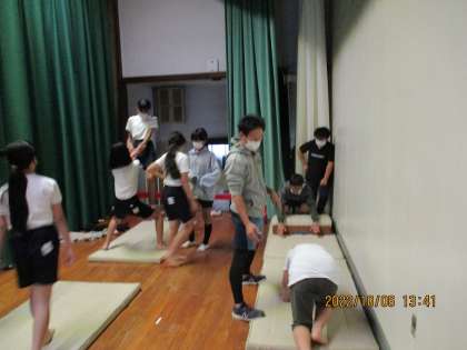 6年生は組体操の技の習得のために昼休みにも頑張っています。