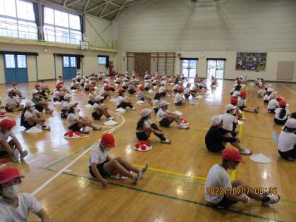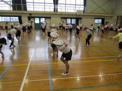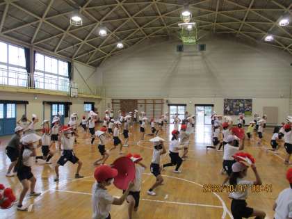 自然の恵みを喜び合うかの子供たちの「花笠」の舞が体育館中にひろがりました。