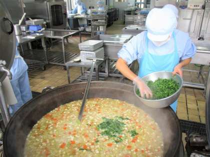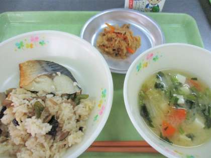 「今日は島根県の郷土料理を給食でつくりました。島根県ではトビウオのことを「あご」と呼びます。県の魚にも選ばれていて、あごが外れるほど美味しいことから名前がつけられたそうです。」