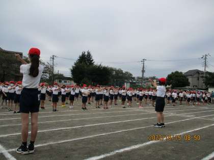 準備運動係は、全校児童がラジオ体操ができるよう、休み時間も模範体操を重ねて他の児童の練習の機会をつくり、今日を迎えました。