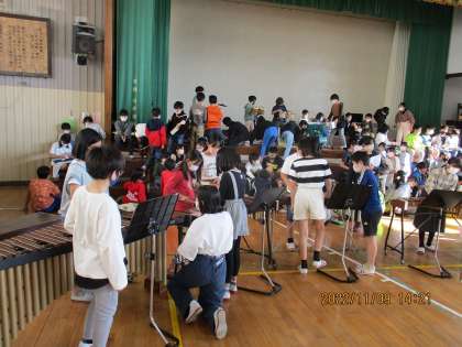 同じ楽器を演奏する仲間同士で聴きあい、アドバイスをし合います。