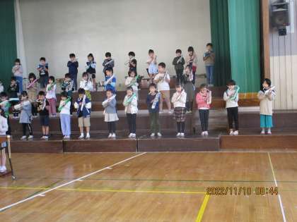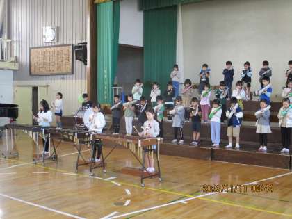 からだ全体でリズムをとりながら まつり を表現する子供たちの演奏は、とても素晴らしいです。